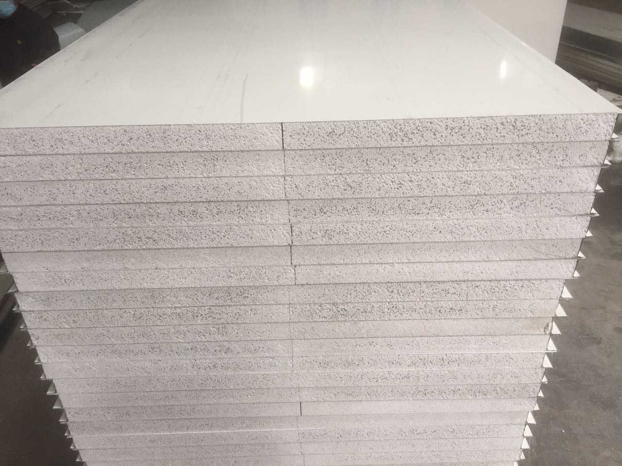 手工復(fù)合板,兩面采用彩涂鋼板,芯材采用無(wú)機(jī)質(zhì)玻鎂板、巖棉,四周采用鐵質(zhì)龍骨框或鋁合金冷拉型雌雄口框, 產(chǎn)品具有表面美觀、隔音、絕熱、保溫、抗震,防火性能符合國(guó)家準(zhǔn)。